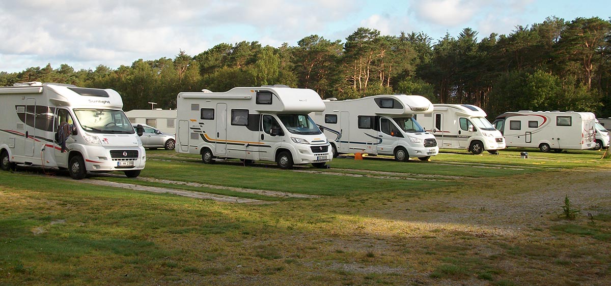 Cabins/apartments of different size. Large, numbered places with electrical outlets for motorhomes and caravans. Area for tents. A big, modern sanitary building.